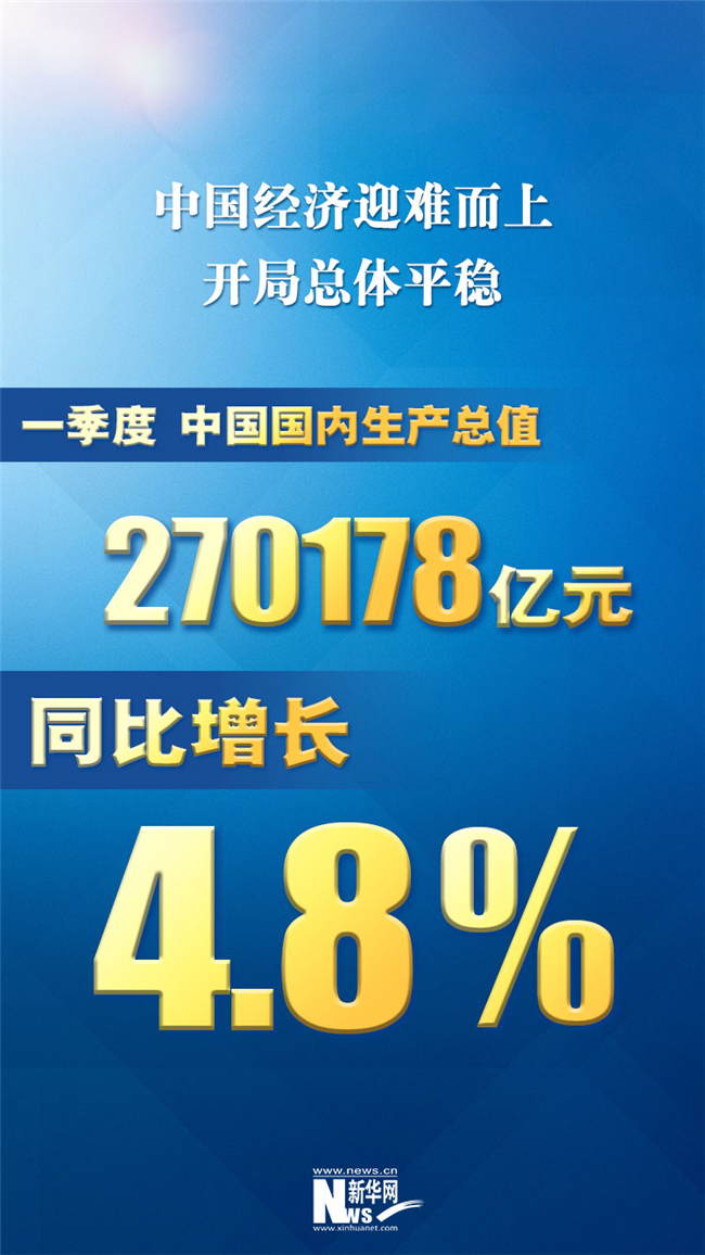 国家统计局2022年4月18日发布数据,初步核算,一季度中国国内生产总值270178亿元,同比增长4.8%。多重风险挑战下,中国经济迎难而上,开局总体平稳,面对新的下行压力,实现全年发展目标需要付出更大努力。